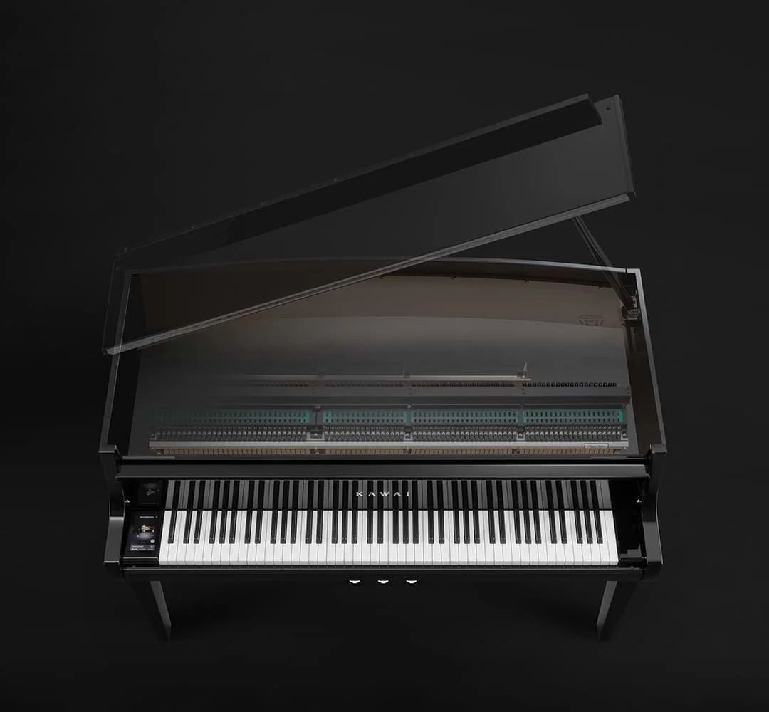 The new NV12 Hybrid Piano features a real grand piano action and soundboard